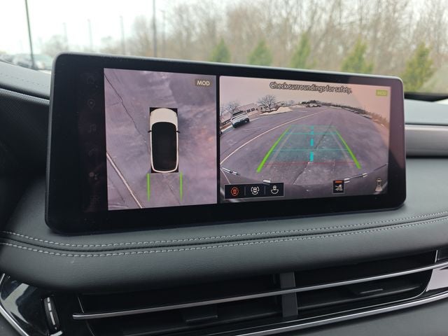 Cargo Package (Cargo Net, Clear Rear Bumper Film, and Medic Kit), Family Package (Seatback Organizer, Soft Sided Cargo Cooler, Tablet Holder, and USB Charging Cable Set), 17 Speakers, 3rd row seats: bench, 4-Wheel Disc Brakes, ABS brakes, Air Conditioning, Alloy wheels, AM/FM radio: SiriusXM with 360L, Anti-whiplash front head restraints, Apple CarPlay/Android Auto, Auto High-beam Headlights, Auto tilt-away steering wheel, Auto-dimming door mirrors, Auto-dimming Rear-View mirror, Automatic temperature control, Bose Performance Series 17-Speaker Sound System, Brake assist, Bumpers: body-color, Climate Controlled Front Bucket Seats, Delay-off headlights, Driver door bin, Driver vanity mirror, Dual front impact airbags, Dual front side impact airbags, Electronic Stability Control, Emergency communication system: INFINITI InTouch, Four wheel independent suspension, Front anti-roll bar, Front Bucket Seats, Front Center Armrest, Front dual zone A/C, Front reading lights, Fully automatic headlights, Garage door transmitter: HomeLink, Heated door mirrors, Heated front seats, Heated rear seats, Heated steering wheel, Illuminated entry, Knee airbag, Leather Shift Knob, Leather steering wheel, Low tire pressure warning, Memory seat, Navigation system: Google Built-in, Occupant sensing airbag, Outside temperature display, Overhead airbag, Overhead console, Panic alarm, Passenger door bin, Passenger vanity mirror, Power door mirrors, Power driver seat, Power Liftgate, Power moonroof: Panoramic, Power passenger seat, Power steering, Power windows, Premium Paint, Radio data system, Radio: Klipsch Premium Audio System, Rain sensing wipers, Rear air conditioning, Rear anti-roll bar, Rear reading lights, Rear seat center armrest, Rear side impact airbag, Rear window defroster, Rear window wiper, Reclining 3rd row seat, Remote keyless entry, Security system, Silver Roof Rail Crossbars, Speed control, Speed-sensing steering, Speed-Sensitive Wipers, Split folding rear seat, Spoiler, Steering wheel memory, Steering wheel mounted audio controls, Tachometer, Tailorfit-Appointed Seating Surfaces, Telescoping steering wheel, Tilt steering wheel, Traction control, Trip computer, Turn signal indicator mirrors, Variably intermittent wipers, Ventilated front seats, and Wheels: 20 x 8J Machined Aluminum Alloy.