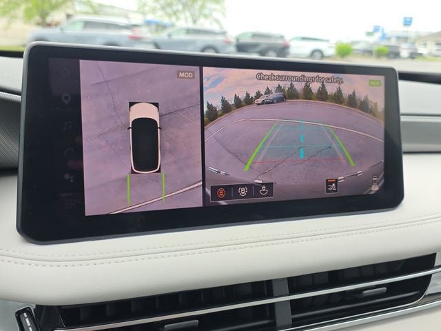 Cargo Package (Cargo Net, Clear Rear Bumper Film, and Medic Kit), 17 Speakers, 3rd row seats: bench, 4-Wheel Disc Brakes, ABS brakes, Air Conditioning, Alloy wheels, AM/FM radio: SiriusXM with 360L, Anti-whiplash front head restraints, Apple CarPlay/Android Auto, Auto High-beam Headlights, Auto tilt-away steering wheel, Auto-dimming door mirrors, Auto-dimming Rear-View mirror, Automatic temperature control, Bose Performance Series 17-Speaker Sound System, Brake assist, Bumpers: body-color, Carpeted Floor Mats with Bench Seats on 3rd Row Tray, Climate Controlled Front Bucket Seats, Delay-off headlights, Driver door bin, Driver vanity mirror, Dual front impact airbags, Dual front side impact airbags, Electronic Stability Control, Emergency communication system: INFINITI InTouch, Four wheel independent suspension, Front anti-roll bar, Front Bucket Seats, Front Center Armrest, Front dual zone A/C, Front reading lights, Fully automatic headlights, Garage door transmitter: HomeLink, Heated door mirrors, Heated front seats, Heated rear seats, Heated steering wheel, Illuminated entry, Knee airbag, Leather Shift Knob, Leather steering wheel, Literature Kit, Low tire pressure warning, Memory seat, Navigation system: Google Built-in, Occupant sensing airbag, Outside temperature display, Overhead airbag, Overhead console, Panic alarm, Passenger door bin, Passenger vanity mirror, Power door mirrors, Power driver seat, Power Liftgate, Power moonroof: Panoramic, Power passenger seat, Power steering, Power windows, Premium Paint, Radio data system, Radio: Klipsch Premium Audio System, Rain sensing wipers, Rear air conditioning, Rear anti-roll bar, Rear reading lights, Rear seat center armrest, Rear side impact airbag, Rear window defroster, Rear window wiper, Reclining 3rd row seat, Remote keyless entry, Security system, Speed control, Speed-sensing steering, Speed-Sensitive Wipers, Split folding rear seat, Spoiler, Steering wheel memory, Steering wheel mounted audio controls, Tachometer, Tailorfit-Appointed Seating Surfaces, Telescoping steering wheel, Tilt steering wheel, Traction control, Trip computer, Turn signal indicator mirrors, Variably intermittent wipers, Ventilated front seats, and Wheels: 20 x 8J Machined Aluminum Alloy.